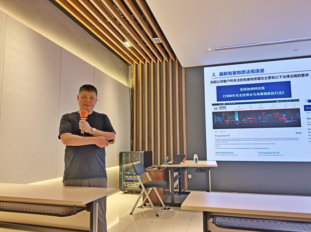 During the training session, Teacher Li Dong provided a systematic explanation covering four aspects: global notification and violation penalties, analyzing the legal and economic consequences of violations through actual case studies; the latest regulations on hazardous substances management, helping the trainees keep abreast of the latest developments in regulations such as RoHS and REACH; management requirements for the company's hazardous substances limits, clarifying internal control standards and key points of implementation; identification and control of product hazardous substances risks, enhancing employees' ability to identify and prevent risks in practical work.